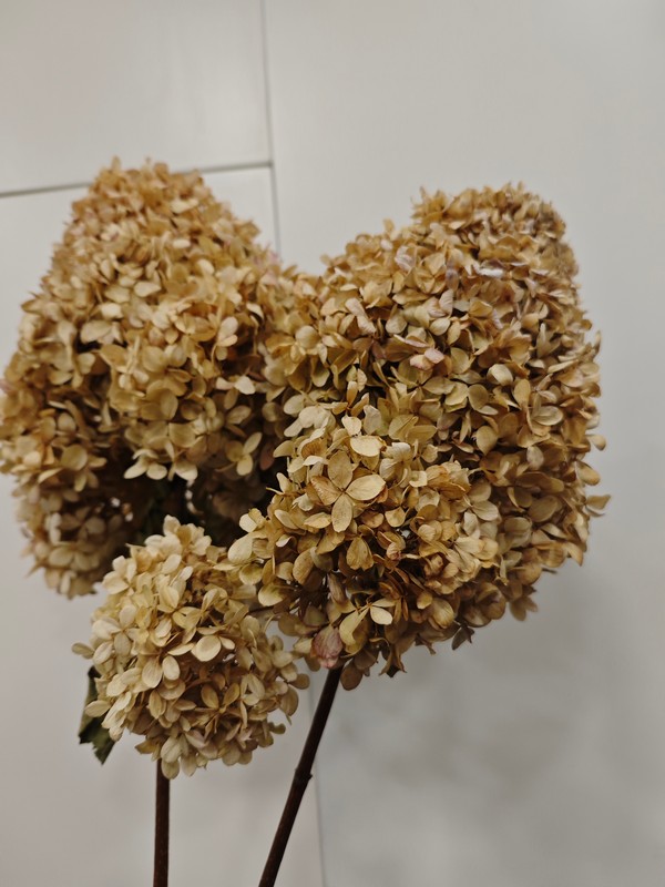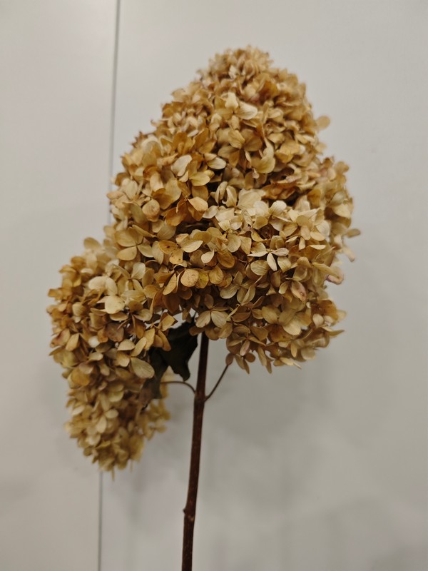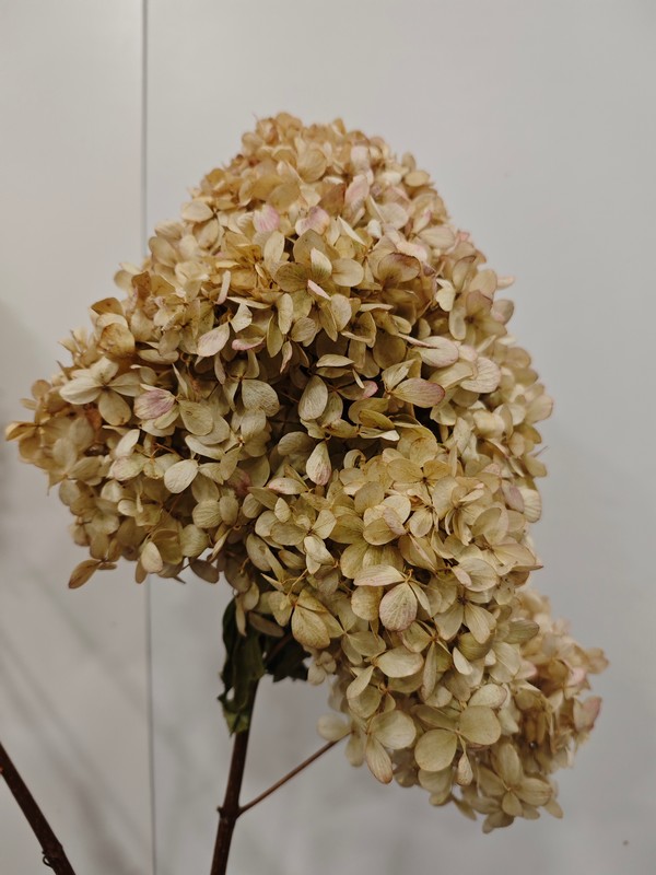 La hortensia paniculata seca natural es una flor decorativa deshidratada, ideal para proyectos de decoración floral, interiorismo y arreglos con flores secas. Conserva su estructura voluminosa y su forma cónica característica, ofreciendo un acabado elegante y duradero.